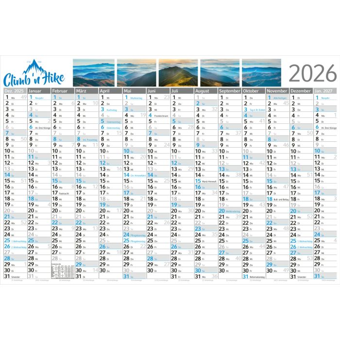 Option: Wandpieker (15 oder 40 mm Durchmesser) · Eindrucke innerhalb des Kalendariums möglich · Viereckpack Wellpappe braun: Nr. 05 zum gerollten Postversand · Kunststoffhülle transparent: Nr. 07 zum persönlichen Verteilen
