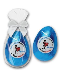 Als Streuartikel lassen sich bedruckte Ostereier in verschiedensten Formen verteilen. Einzeln verpackt im Glanzbeutel mit beigefügter Karte oder klassisch in Alufolie verpackt, auf der fröhliche Ostergrüße untergebracht sind. Für das ganz besondere Osterpräsent lassen Sie Ihr ein Ostereier mit Logo auf einem Marzipanschild bedrucken. Diese kleinen Werbegeschenke können Sie einfach in ihrem Kundenbereich auslegen oder verteilen und so nicht nur österliche Stimmung, sondern auch ihre Marke und Werbebotschaft verbreiten. Nicht nur bei Kindern sind bedruckte Ostereier eine beliebte Leckerei. Soll es für Ihre geschätzten Mitarbeiter und Geschäftskunden doch etwas wertigeres sein, bietet es sich an Maxi-Schoko-Eier, Trüffeleier im Würfelkarton oder ein großes gefülltes Trüffelei bedrucken zu lassen. Ihre Kunden, Mitarbeiter und Geschäftskunden werden es sich schmecken lassen. Wunderbar ergänzen lassen sich die bedruckten Ostereier mit Osterhasen mit Logo. Sprechen Sie uns an, wenn Sie Ostereier bedrucken lassen wollen. Gerne beraten wir Sie auch in allen Fragen zu Werbeartikeln Ostern