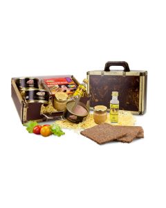 • Mediterrane Vielfalt in einem schönen prächtigen Geschenkkorb mit ausgesuchten Köstlichkeiten vom Mittelmeer